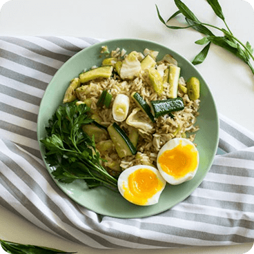 Rice, Zucchini, Olive oil, Garlic, Onion, Salt, Pepper, Fresh herbs